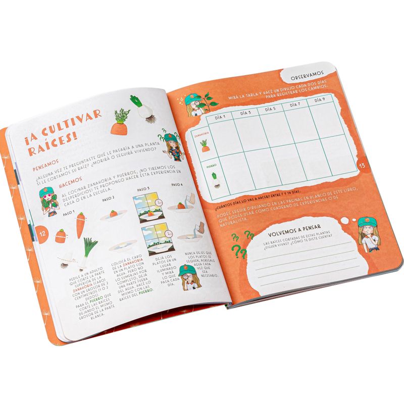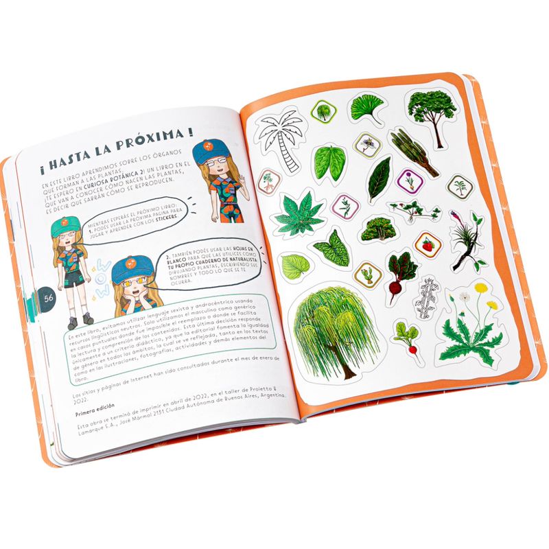 Además posee hojas en blanco y elástico sujetador que sirven como cuaderno de naturalista, y también tiene un sobre para guardar hojas secas, una plancha de stickers.