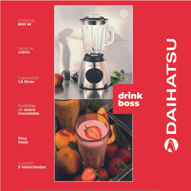 La licuadora Daihatsu SB-4350 te permite preparar deliciosos alimentos para deleitar a todos.