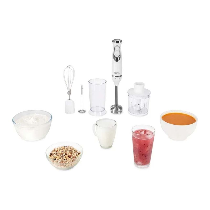Su diseño ergonómico y su varilla removible de acero inoxidable facilitan su uso y limpieza, garantizando una experiencia práctica y cómoda. Incluye accesorios como batidor, espumador y chopper, lo que la convierte en un aliado perfecto para cualquier receta.