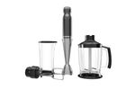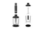 Incluye un vaso picador de 1250 ml, un vaso medidor con tapa de 800 ml y un batidor doble de alambre, permitiendo máxima versatilidad en la cocina. Su diseño ergonómico, con cable de 1,3 m, ofrece libertad de movimiento y comodidad en cada uso.