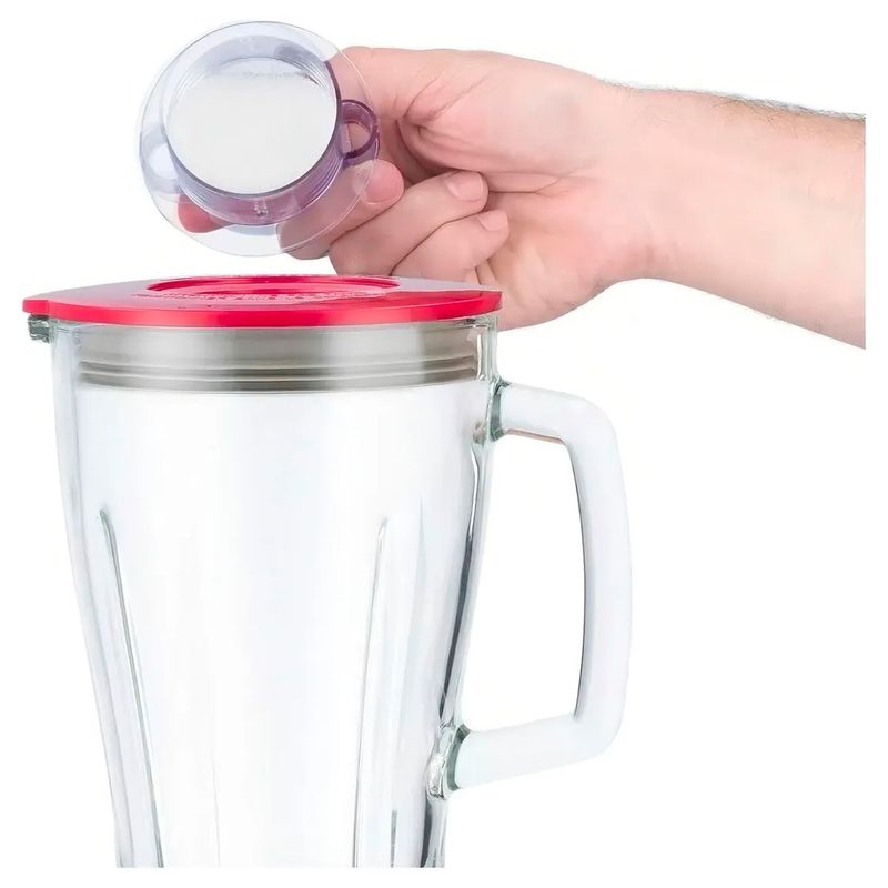 - Uso Inteligente: Incluye tapa dosificadora para agregar ingredientes mientras licuás sin derrames, y un práctico pico vertedor.