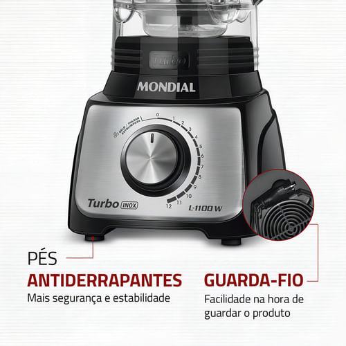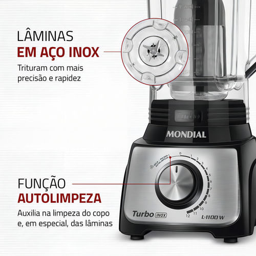 Con 1.100 W de potencia y una capacidad total de 3 litros, ¡la batidora Mondial Turbo L-1100 es ideal para tu familia! Ofrece ventajas a la hora de preparar porciones grandes: tiene 12 velocidades, un cuchillo serrado con 6 hojas de acero inoxidable y una función de autolimpieza. Puedes preparar tarta de zanahoria, pan de queso, pizza batidora y otras recetas en tamaño grande.