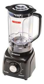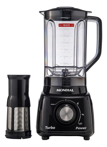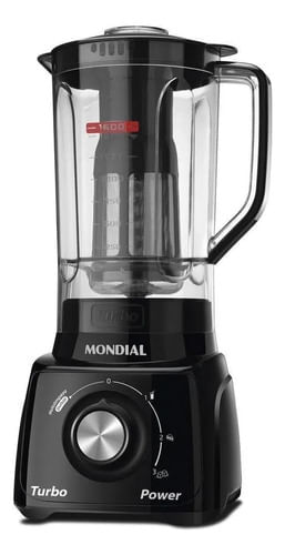 Licuadora Mondial Turbo Power L-99, ideal para preparar una variedad de recetas y bebidas frías con la función de triturar hielo. Tiene una potencia de 550 W y cuchillas de acero inoxidable integradas, que ofrecen 3 velocidades para alcanzar rápidamente el punto correcto de las mezclas. La tapa tiene una taza medidora y la taza tiene un nivel de medidas para facilitar la preparación.