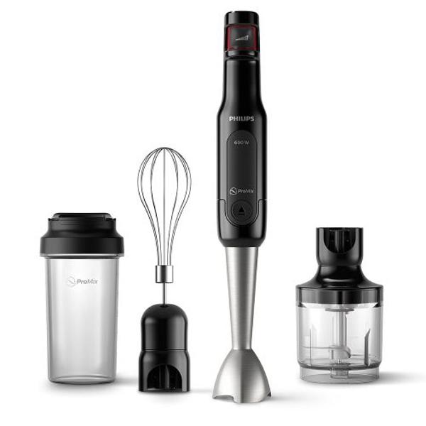 La nueva licuadora manual de la colección ProMix Viva con su gran variedad de accesorios lo ayuda a crear un sinfín de comidas y aperitivos saludables. Protector de hoja antisalpicaduras para evitar salpicaduras durante la mezcla