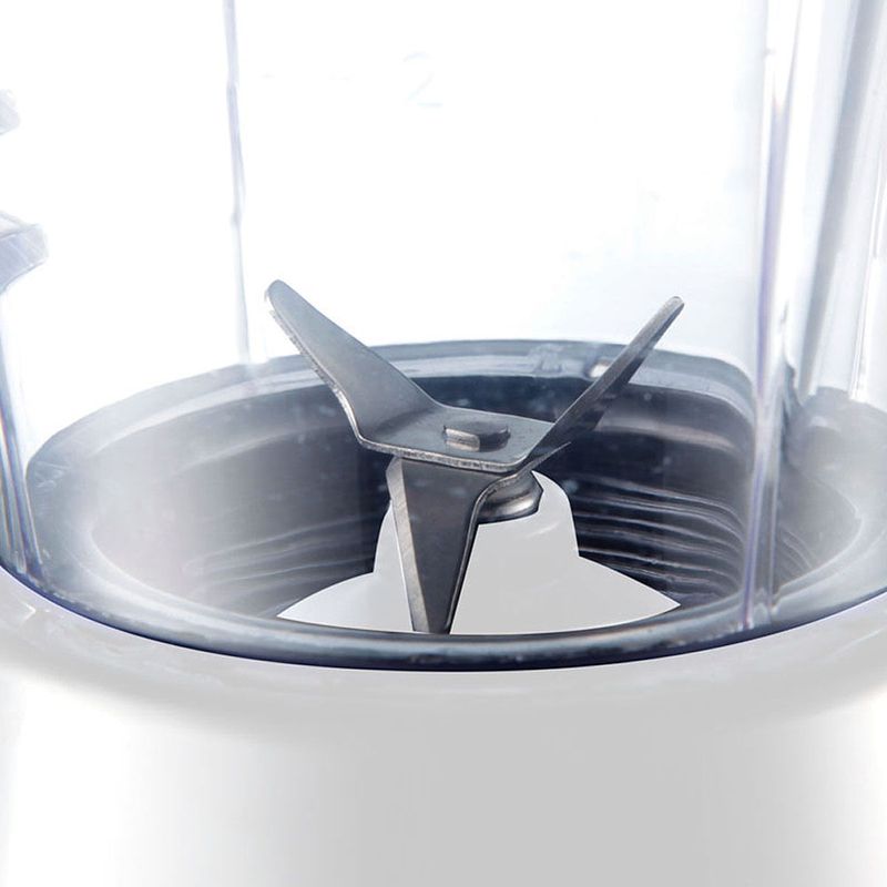 Cuenta con 2 velocidades para triturar la fruta o verdura y si se desea acelerar el proceso de licuado, girando la perilla a pulso se llegará a la potencia máxima en cuestión de segundos.