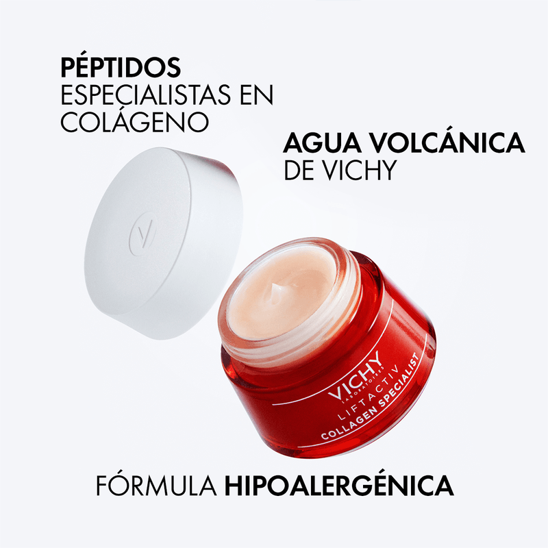 Liftactiv Collagen Specialist crema anti edad con peptidos de Vichy. Permite a tu piel rejuvenecer su aspecto de forma progresiva combatiendo los efectos de la pérdida de colágeno en la piel.