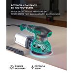 Potencia profesional de 200W: trabajá con una velocidad de 7000–12000 rpm que asegura acabados uniformes y rápidos.