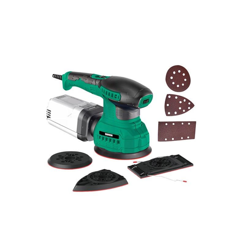 Versatilidad total en un solo equipo: tres bases intercambiables (triangular, rectangular y redonda) para adaptarse a cada tarea de lijado.