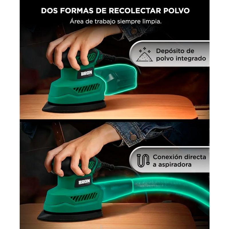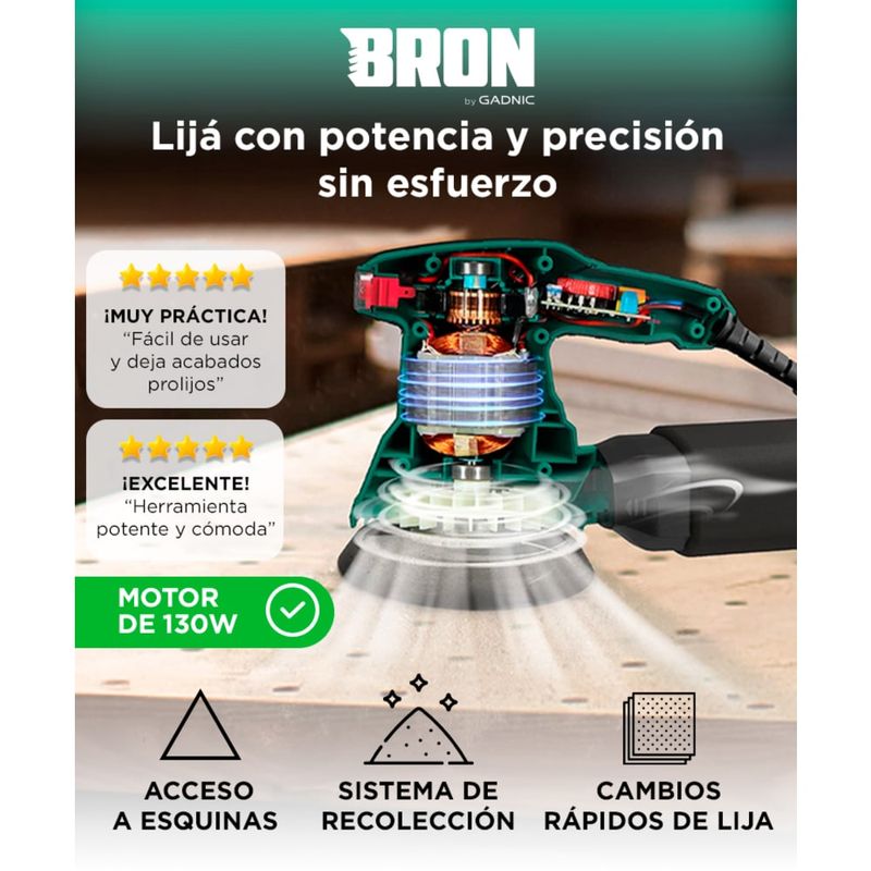 La lijadora triangular BRON de 130W y 13.000 rpm ofrece un rendimiento estable para restauraciones, carpintería y tareas de bricolaje. Su diseño compacto permite trabajar con precisión en proyectos grandes y pequeños sin perder estabilidad ni eficiencia.