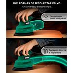 El depósito recolector captura residuos directamente desde la base, manteniendo la superficie más ordenada y reduciendo la dispersión de polvo. También permite conexión directa a aspiradora para sesiones prolongadas.
