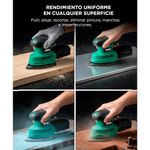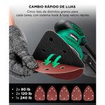 El set incorpora 5 hojas de lija: 2× grano 80 (desbaste) / 2× grano 120 (nivelación) / 1× grano 240 (acabado fino). Podés adaptarte fácilmente a cada etapa del trabajo sin necesidad de comprar accesorios adicionales.