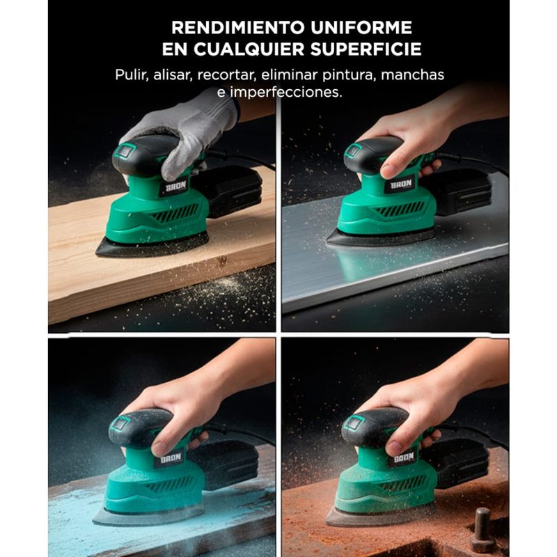 Apta para lijar madera, suavizar superficies metálicas, remover pintura y trabajar sobre proyectos de restauración. Una herramienta única para múltiples tareas en el hogar o taller.