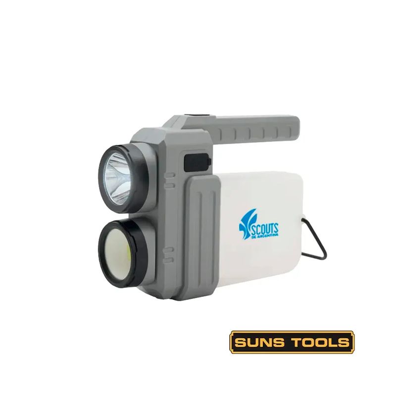 Linterna Camp: Lámpara fabricada en ABS + PP. Su diseño versátil ofrece dos tipos de agarre: una manija ergonómica para un mejor control en modo linterna y una manija tipo "cuerda", ideal para colgar y utilizar como farol. Cuenta con dos niveles de luminosidad en su modo linterna: luz alta, que brinda una iluminación potente para largas distancias, y luz baja, ideal para un ambiente tenue y funcional. Además, incorpora un panel de luz lateral en modo farol, perfecto para iluminar espacios amplios con una luz uniforme. Incluye cable de USB, garantizando que siempre esté lista para acompañarte en cada aventura. Es el accesorio ideal para camping, trekking o emergencias. Suns Tools. Medidas: 16.3 cm - Longitud:20.4 cm - Ancho:6.1 cm. Peso: 380g. Origen: China. Garantia: 6 meses.