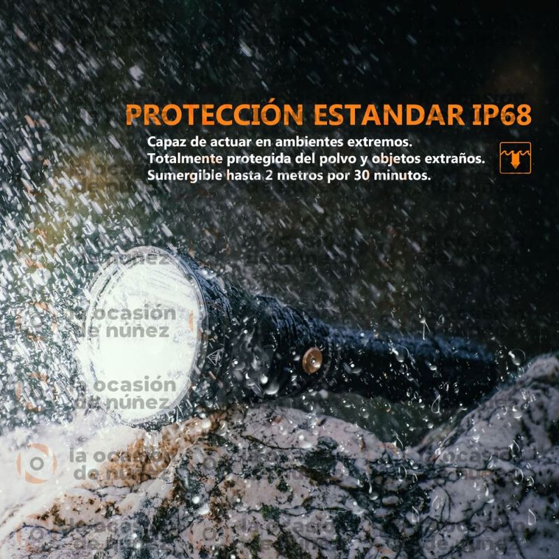 La resistencia IP68 permite la inmersión de la linterna a 2 metros de profundidad durante 30 minutos.