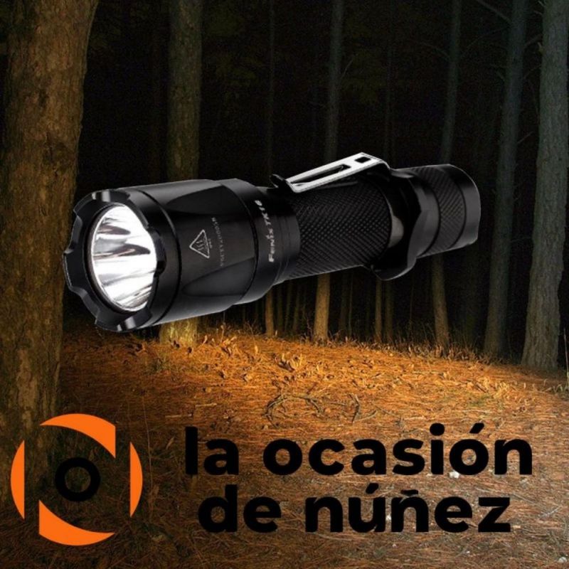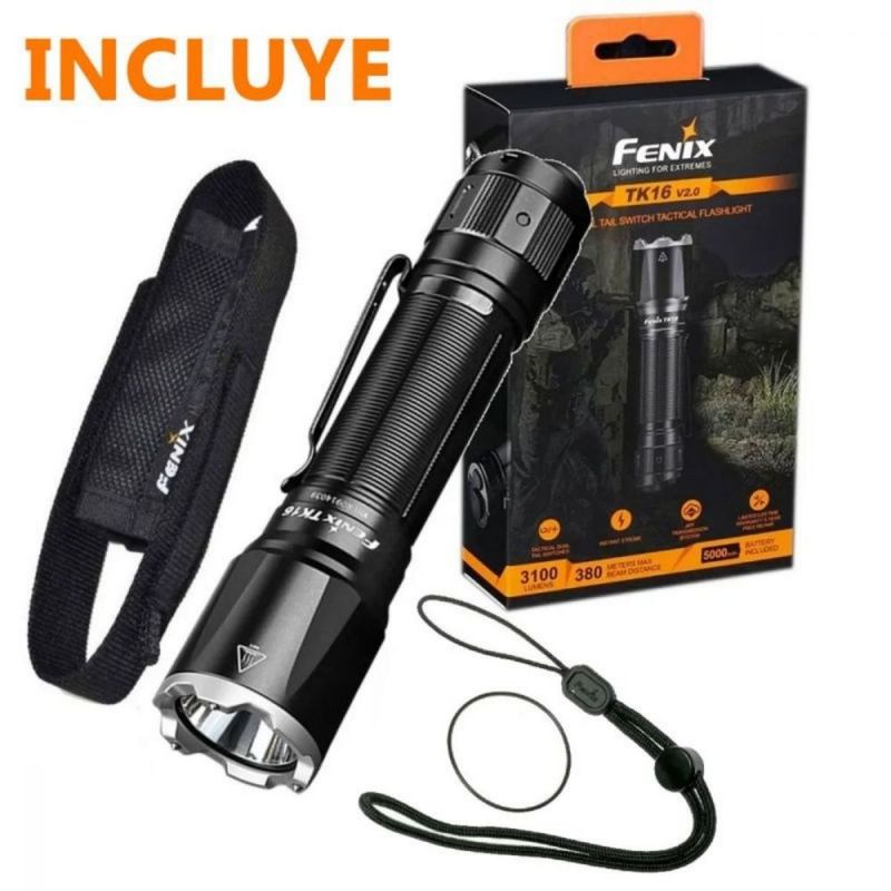 La Linterna Fenix TK16 entrega una potencia máxima de 1000 lúmenes y una distancia de haz de gran alcance que llega a los 240 metros. El interruptor de tapa trasera doble proporciona modo estroboscópico instantáneo y la función de encendido momentáneo haciendo más confiable a la TK16, y más flexible en equipos de seguridad, caza, búsqueda, etc.