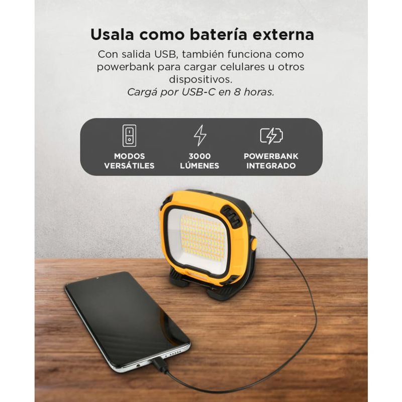 Iluminá cualquier entorno con máxima potencia. Ideal para trabajos, camping o situaciones de emergencia.