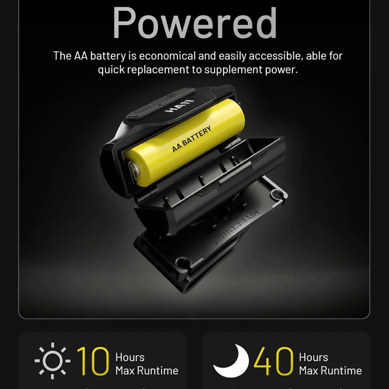 La linterna frontal LED NiteCore HA11 es una linterna frontal ultraligera. La carcasa está hecha de un plástico resistente y ligero. Incluyendo la pila AA y la cinta para la cabeza, esta linterna frontal pesa sólo 35 gramos. La linterna es ligera, por lo que es muy adecuada para acampadas o para correr.