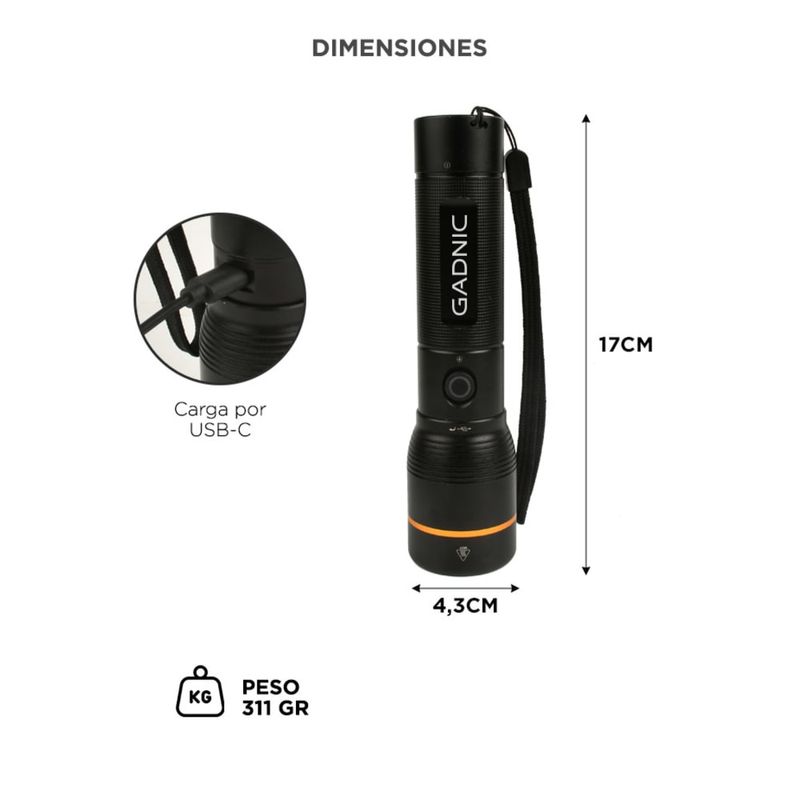 Modos: Alta, Media, Baja, Flash explosivo, SOS