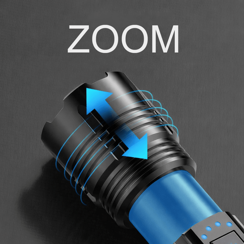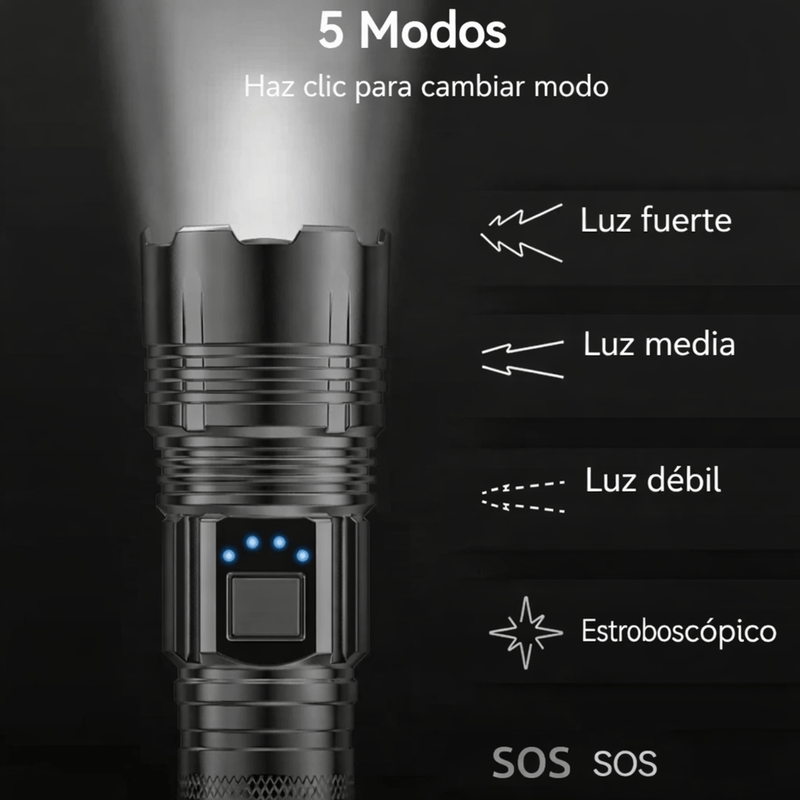 Linterna Táctica LXS SS-SD-7132 1000 Lúmenes con Zoom, Power Bank y Batería 26650 3500 mAh