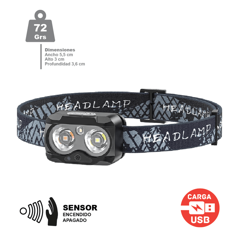 Linterna de cabeza recargable LXS SS-TD-0173 400 lúmenes con sensor y 5 modos de iluminación