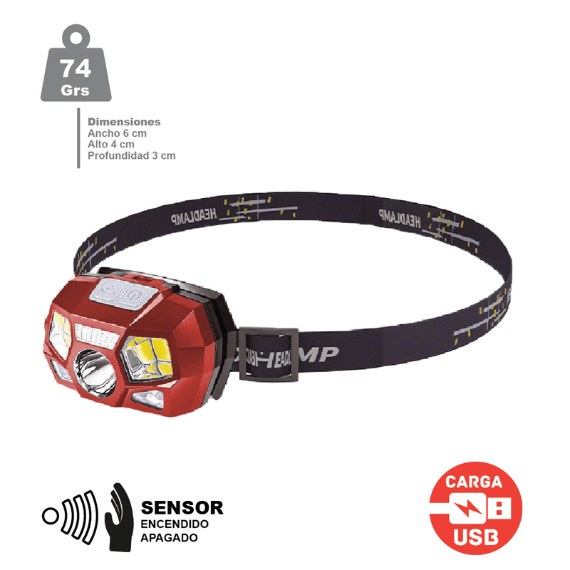 Linterna de cabeza LXS SS-K205 300 lúmenes con sensor, 5 modos de luz y batería interna 1200 mAh