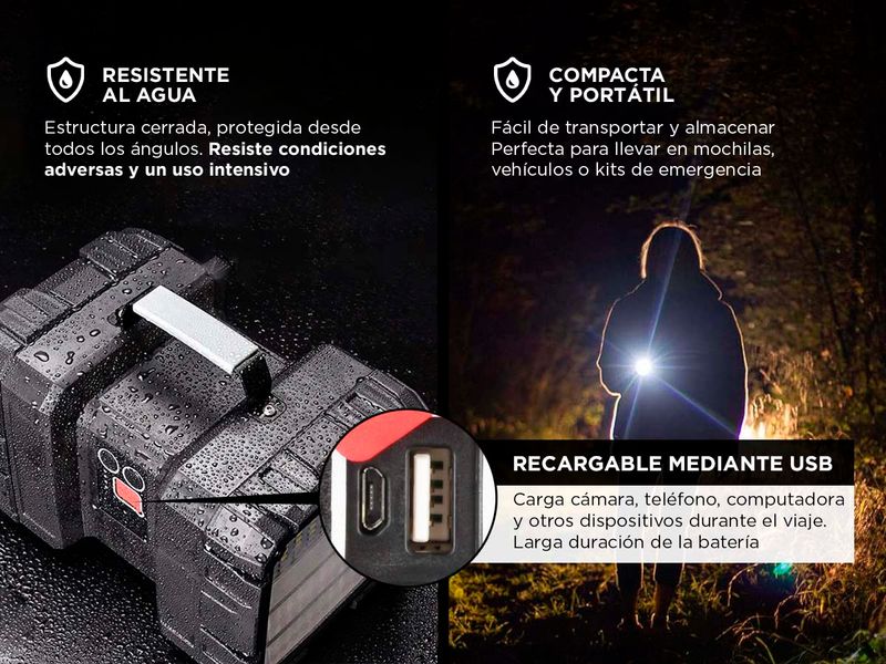 Diseño resistente y duradero: Fabricada con materiales de alta calidad, la linterna está diseñada para resistir condiciones adversas y un uso intensivo.