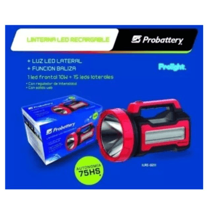 Linterna Probattery de Mano Recargable 10W + 15 Led Laterales (Ilre-9211)