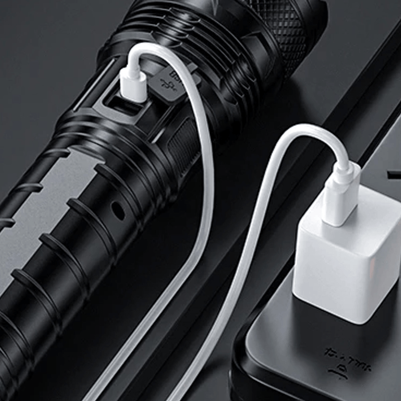 Linterna Táctica LXS SS-SD-7149A 1200 Lúmenes con Zoom, Power Bank y Batería 4800 mAh