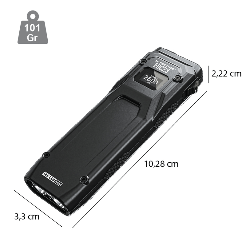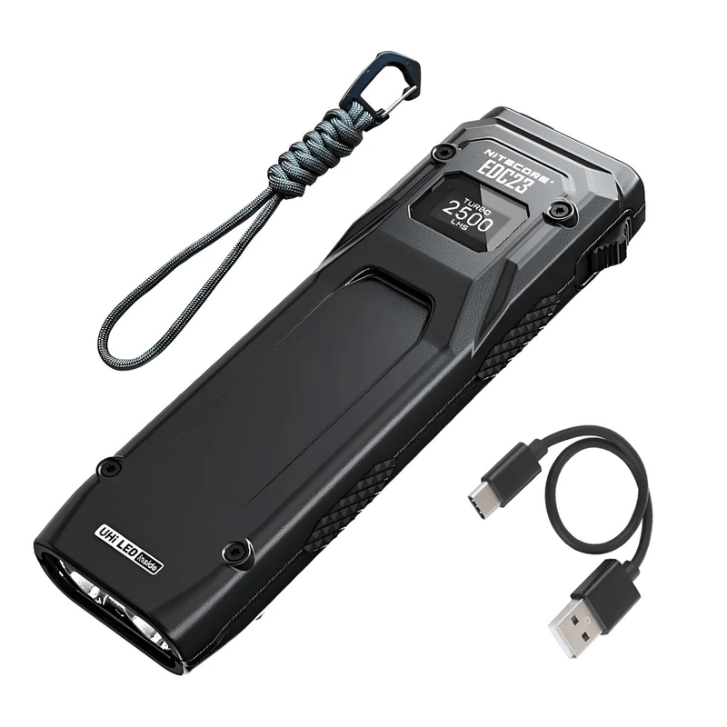 La Nitecore EDC23 es una linterna táctica recargable, ultradelgada y compacta, ideal para el transporte diario (EDC, por sus siglas en inglés). Combina un diseño delgado con un alto rendimiento, ofreciendo una salida máxima de 2500 lúmenes.