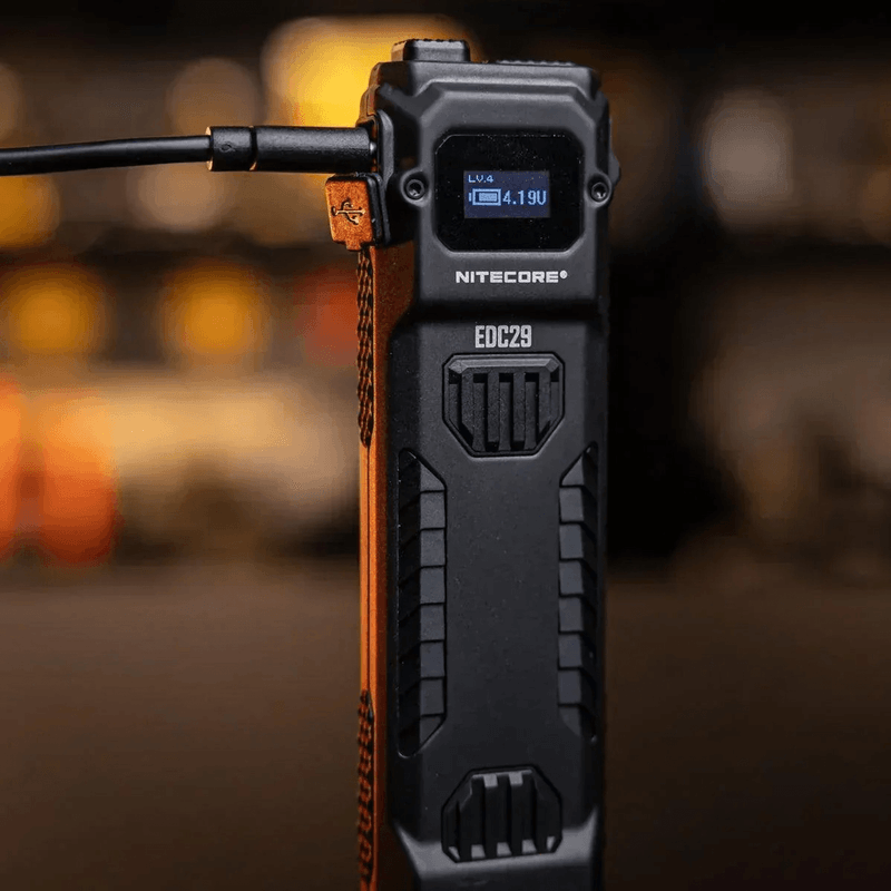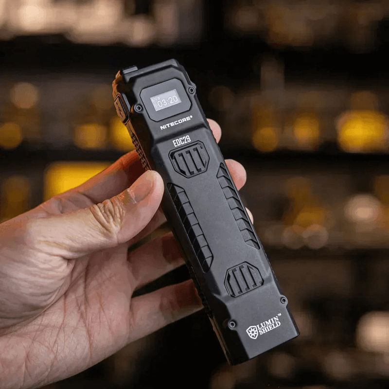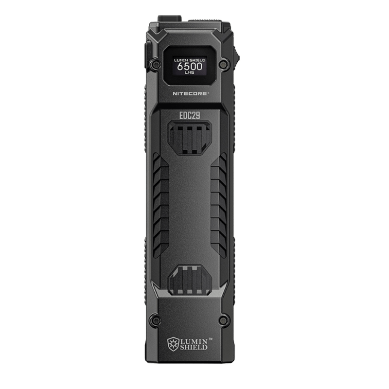 La Nitecore EDC29 es una linterna táctica recargable de alto rendimiento diseñada para el uso diario (EDC). Con un formato plano y compacto, ofrece una potencia máxima de 6500 lúmenes y un alcance de hasta 400 metros.