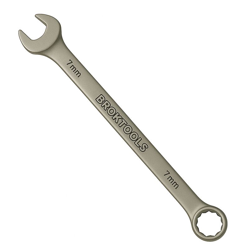 LLlave combinada fija BROKTOOLS fabricada en acero Cromo-Vanadio, ideal para trabajos profesionales y domésticos. Incluye boca fija y estrella de 12 puntas para un agarre seguro y preciso. Gran resistencia y durabilidad para un uso confiable en cualquier entorno.