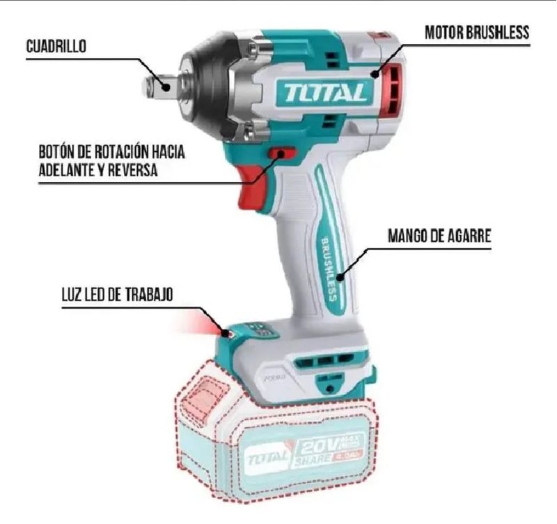 Llave De Impacto Inalambrica TWLI20501 Brushless 1/2 PulG Total 20V