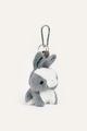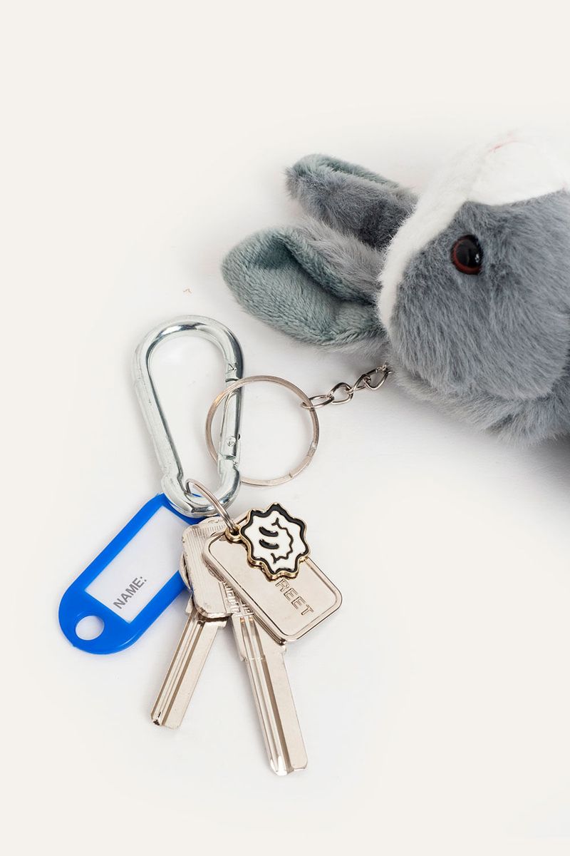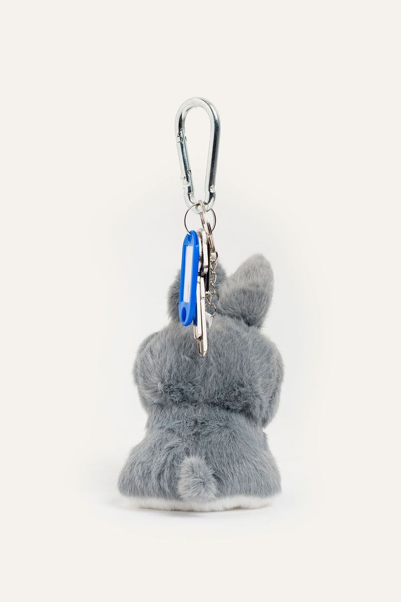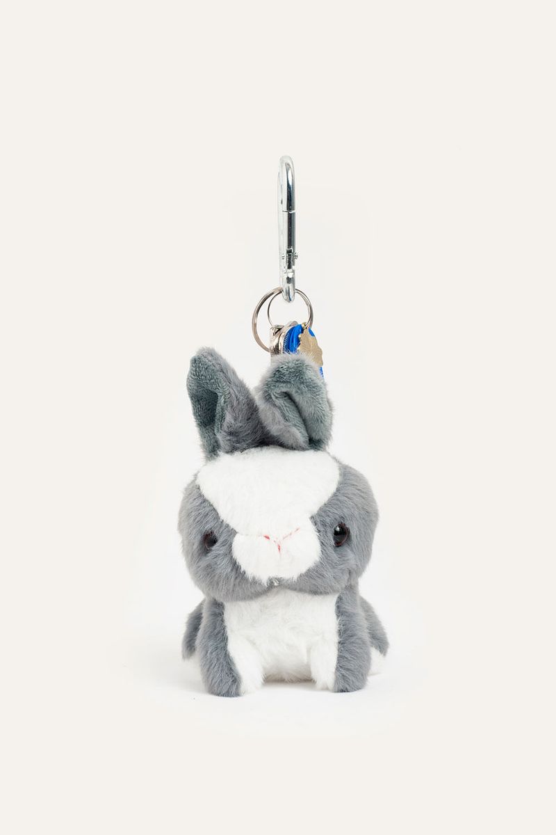 Llavero de peluche con forma de conejo que suma un detalle tierno y original. Incluye llaves metálicas, chapita marcaria y dije de carita que completan el diseño. Ideal para colgar en mochilas, bolsos o usar como accesorio decorativo.