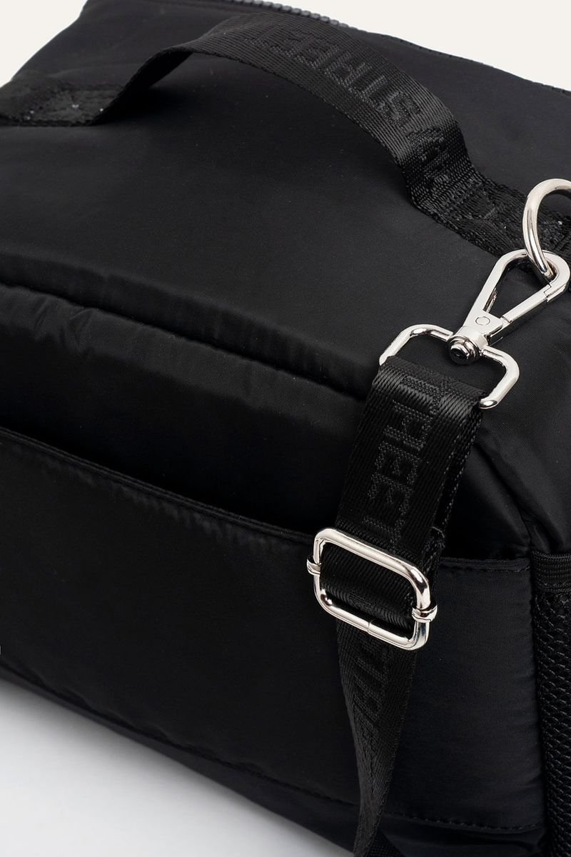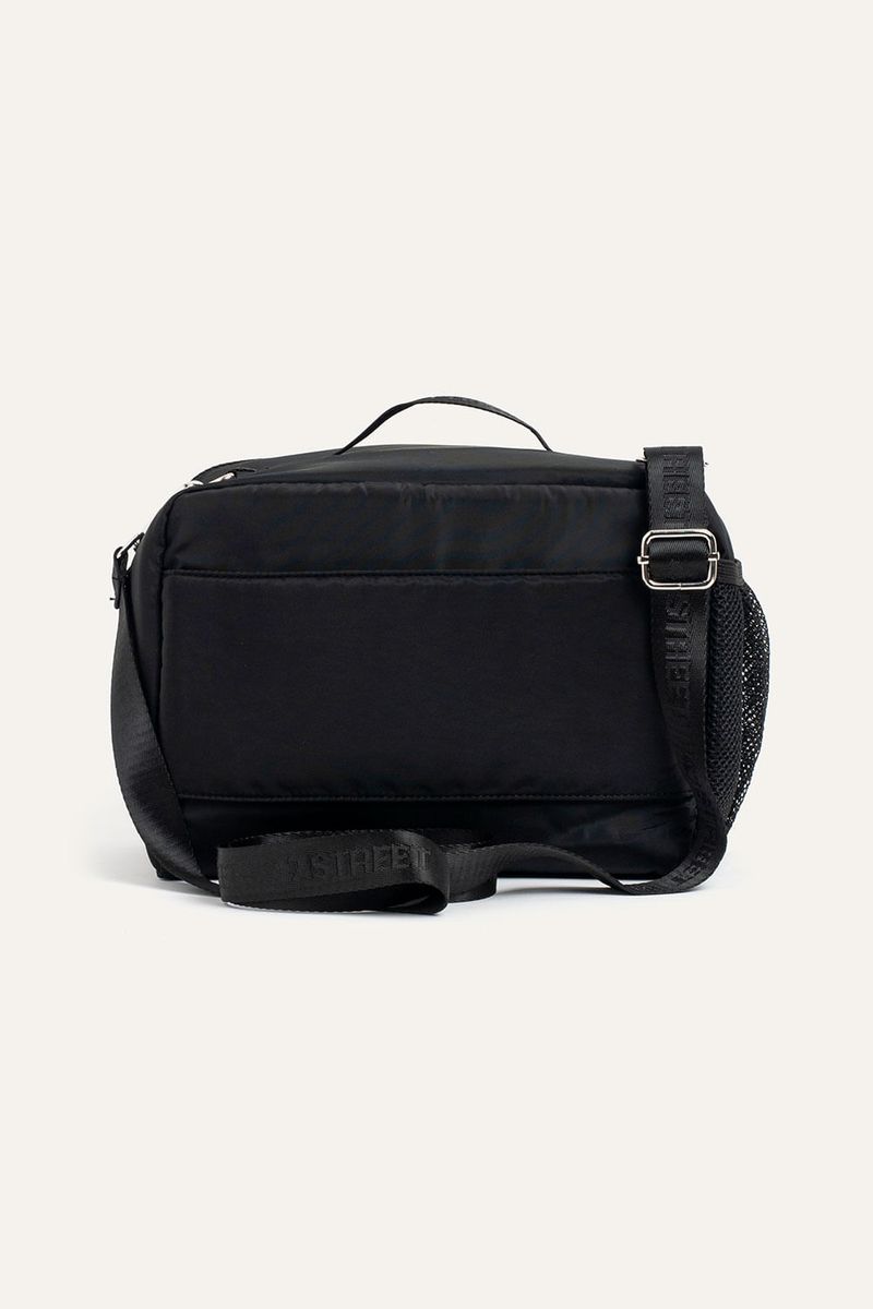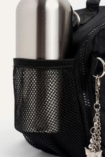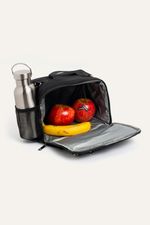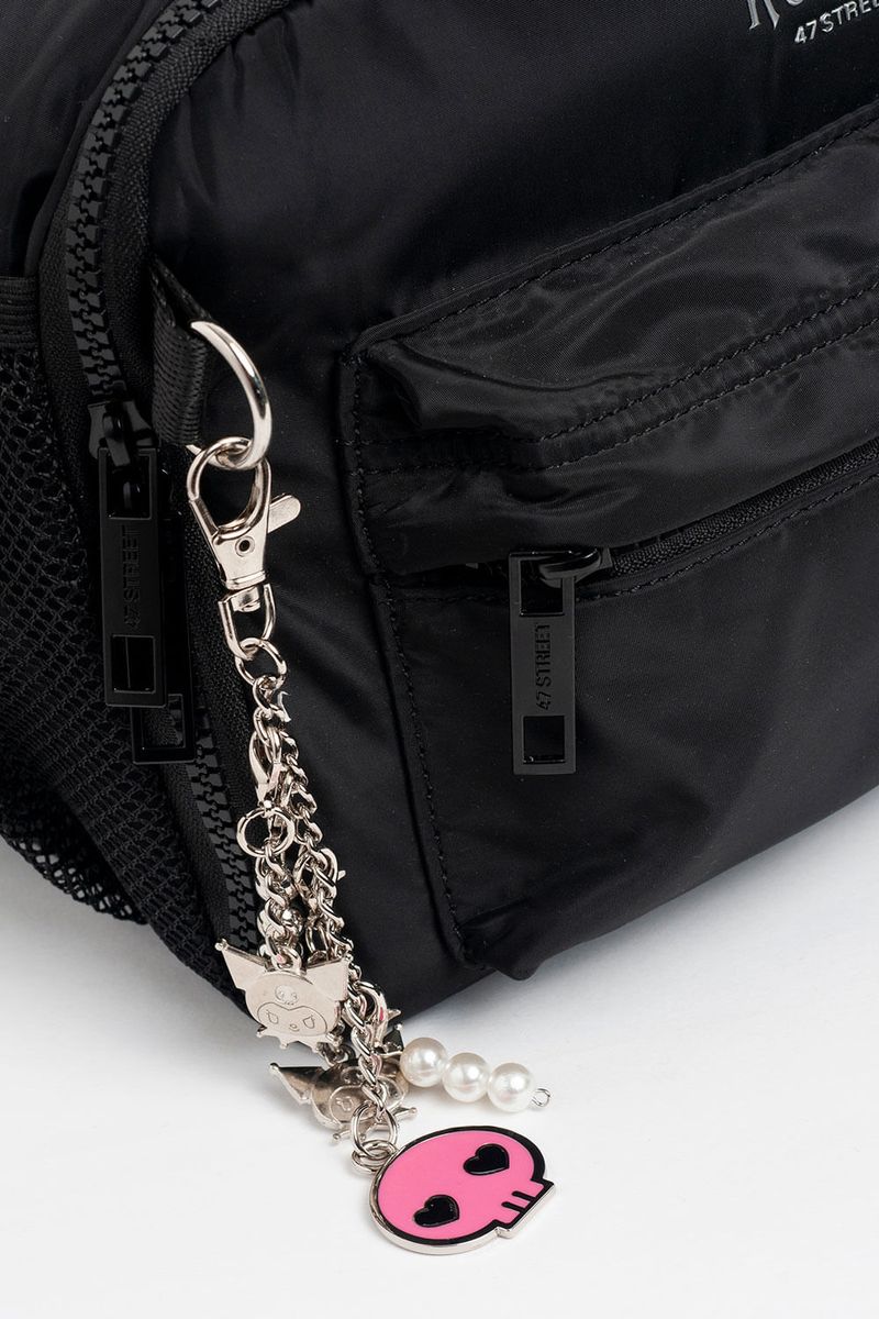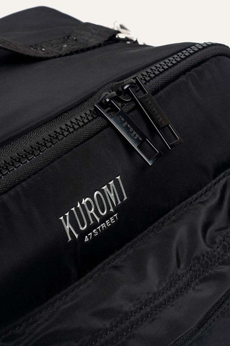 Lunchera con estampa de Kuromi y interior con material térmico, ideal para mantener alimentos a temperatura. Cuenta con bolsillo de red lateral para botella, llavero extraíble de cadena con charms de Kuromi y correa extraíble personalizada con logo de 47 Street. Incluye además un bolsillo delantero. Confeccionada en nylon, material repelente al agua y de fácil limpieza. Producto con licencia oficial de Sanrio.