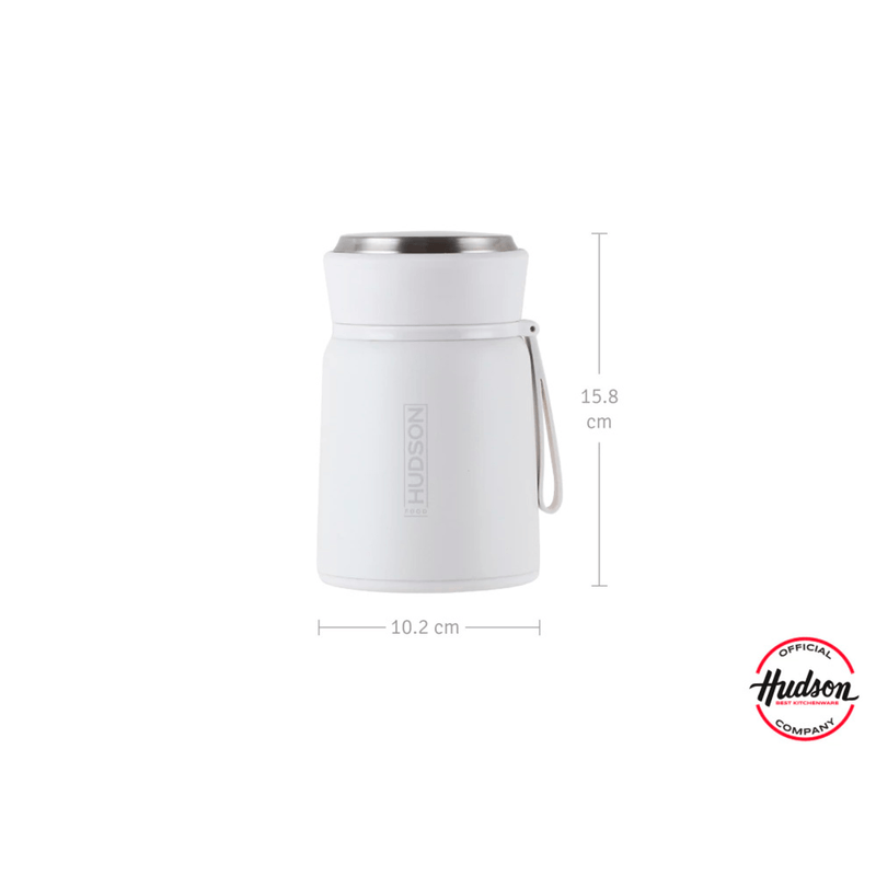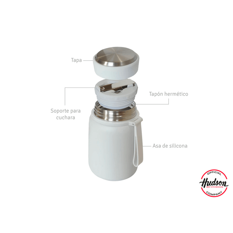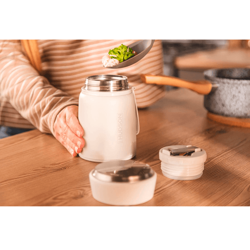 Práctica y elegante, la lunchera Hudson en color crema es ideal para llevar tus comidas. Su doble aislación mantiene los alimentos calientes o fríos por más tiempo, mientras que el tapón hermético evita cualquier derrame. Su diseño compacto incluye un asa de silicona para un transporte cómodo y un soporte integrado con una cuchara plegable de acero inoxidable.