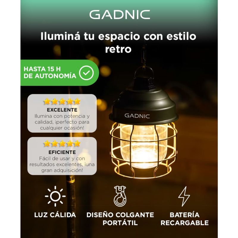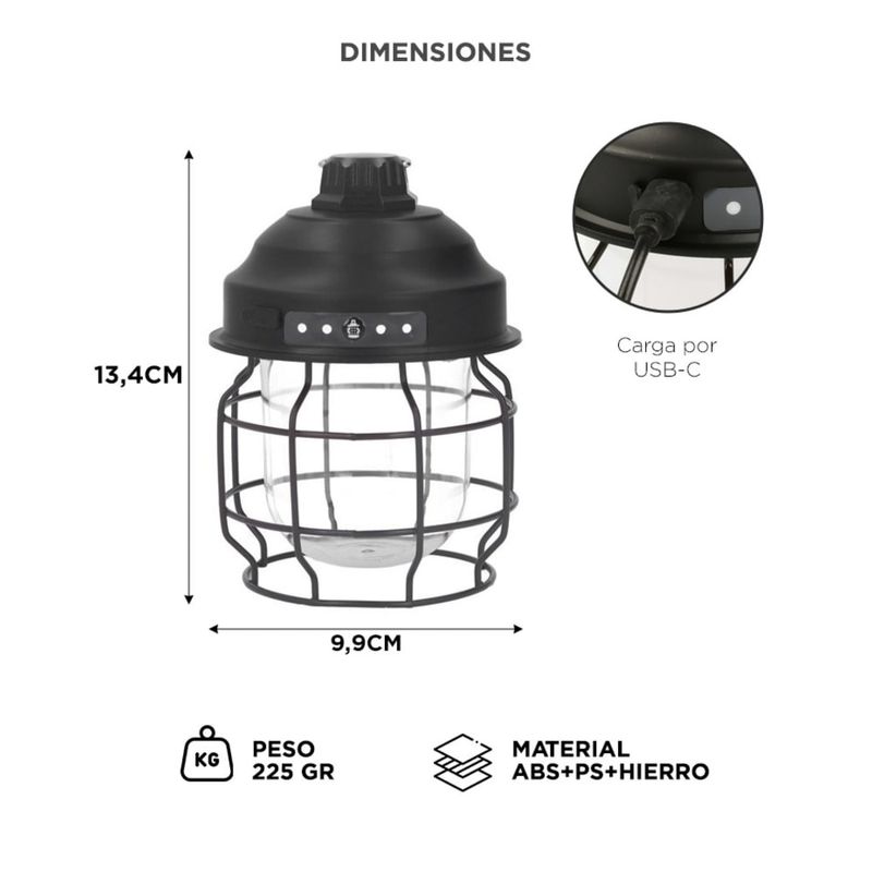 Este farol combina una estética retro con materiales resistentes, logrando un equilibrio entre decoración y utilidad. Su estructura metálica con acabado negro y forma tipo jaula lo convierte en una pieza ideal para ambientes cálidos como galerías, livings rústicos o carpas de camping con estilo. Aportá un toque clásico sin perder practicidad.