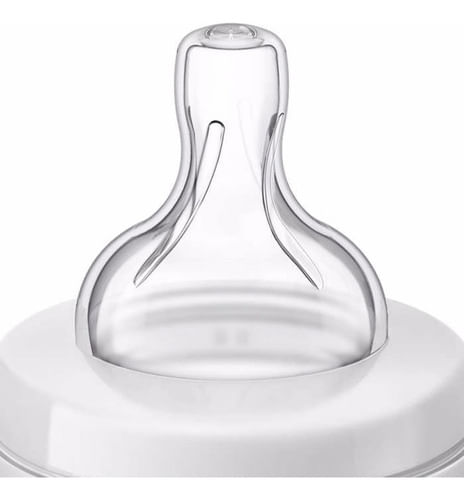 La forma de la tetina permite un agarre seguro y la textura acanalada evita la contracción de esta, lo que brinda una alimentación cómoda e ininterrumpida.
