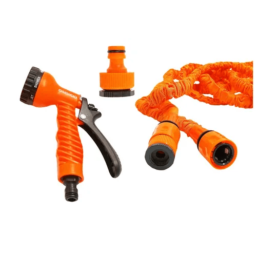 La manguera extensible Daewoo DAEH23 se expande hasta 23 metros, ideal para riego, lavado y tareas del hogar. Súper liviana, no se enreda y se contrae automáticamente al finalizar su uso. ¡Comodidad y practicidad en cada uso!