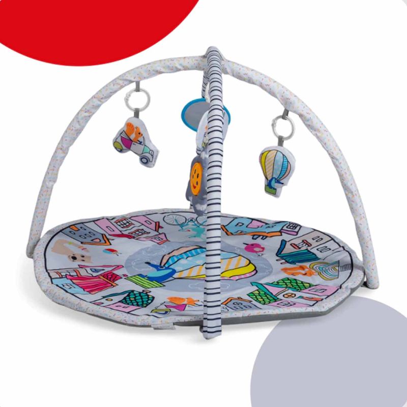 Del piso al cielo en un parpadeo: el Gimnasio de Actividades Bebesit 5010 Blanco Globo convierte cualquier superficie en una mini ciudad blanca salpicada de globos aerostáticos y animalitos viajeros. Su tapete redondo acolchado, los arcos desmontables y los juguetes colgantes estimulan la vista, el tacto y la coordinación del bebé desde el primer día.