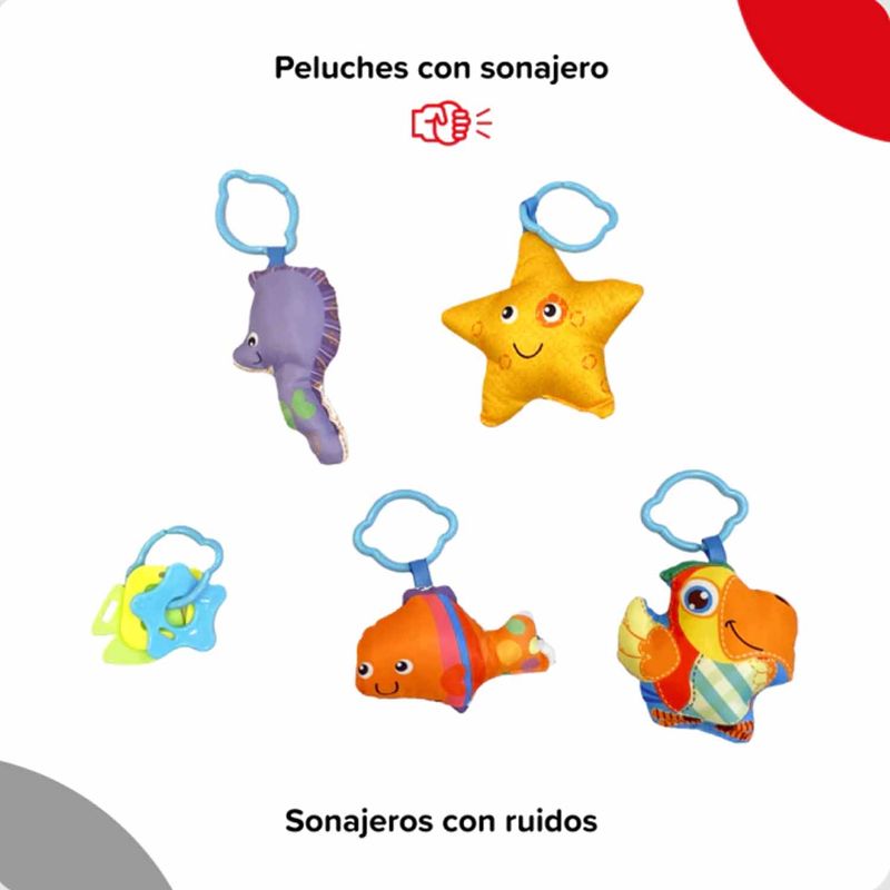 Colgantes movibles para ajustar la altura y estimular la coordinación visual.