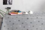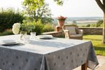 El mantel es antimanchas e impermeable, incorpora un tratamiento de alto gramaje de resina, aportando durabilidad frente a los lavados e impidiendo que la suciedad penetre en el tejido.