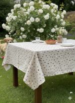 El mantel es antimanchas e impermeable, incorpora un tratamiento de alto gramaje de resina, aportando durabilidad frente a los lavados e impidiendo que la suciedad penetre en el tejido.