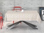 El mantel es antimanchas e impermeable, incorpora un tratamiento de alto gramaje de resina, aportando durabilidad frente a los lavados e impidiendo que la suciedad penetre en el tejido.