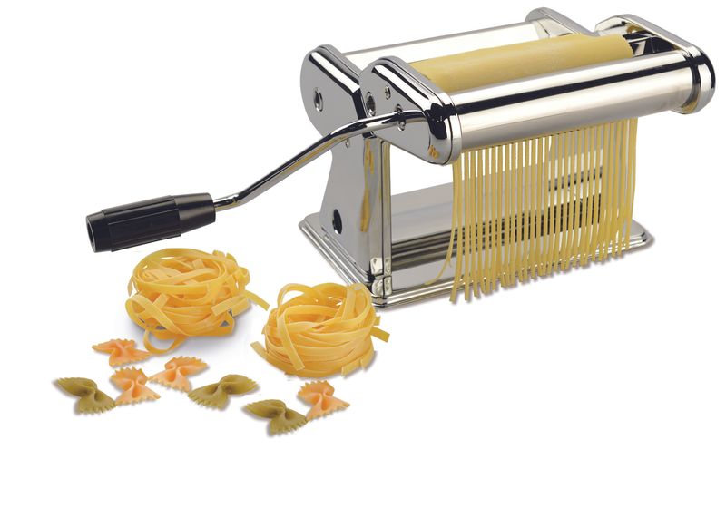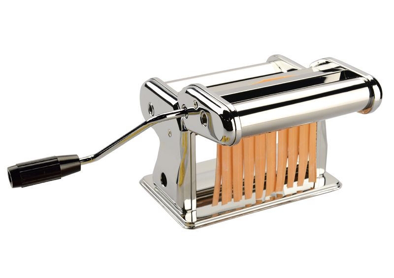 Fabricadora de pastas INCANTO. diseñada en acero cromado de alta calidad. rollos para realizar hojas de masa de 150mm 9 configuraciones de espesor accesorio de doble corte para pasta de 2.0mm y 6.6mm Compatible con otros accesorios de corte de pasta y ravioles de la marca incanto.