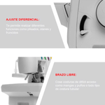 • Brazo libre - Con sólo quitar la extensión de la base hace más fácil la costura de mangas,