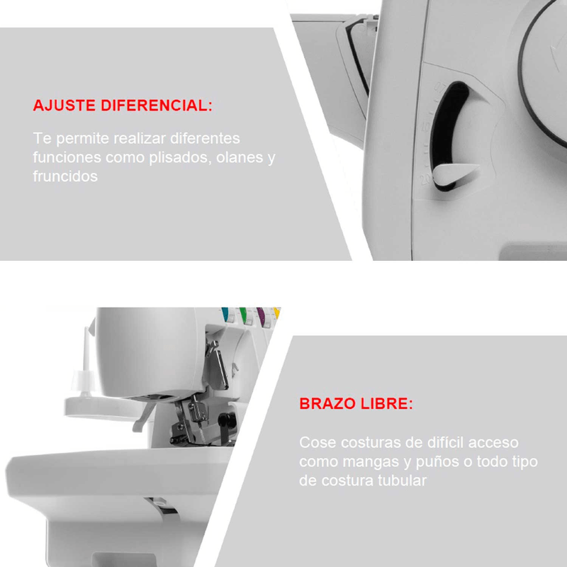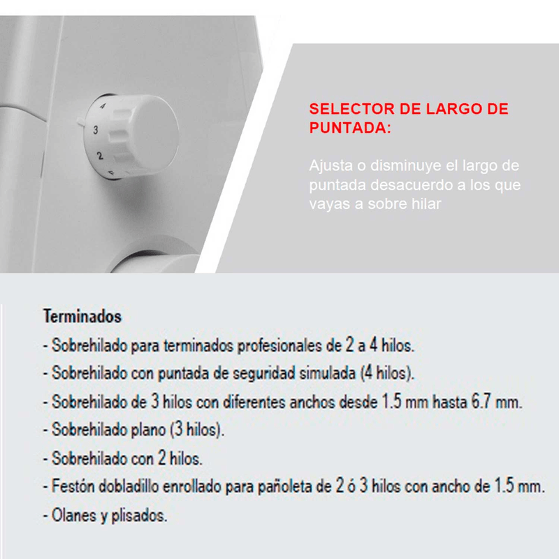 • Sobrehilado para terminados profesionales de 2 a 4 hilos.