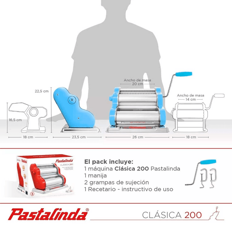 Fácil de usar, confortable, de elegante diseño y mayor tamaño permite preparar mayor cantidad de pasta en menor tiempo, es por eso que la Pastalinda Modelo "Clásica" es siempre la preferida en los hogares argentinos.