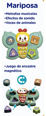 ¡La Mariposa de los Adorables Animales Kydos llega para llenar de color y diversión los momentos de juego! Con sonidos, luces y texturas, estimula los sentidos y la curiosidad de los más pequeños.