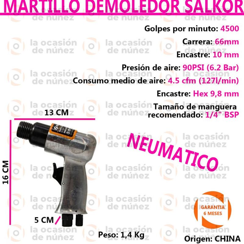 Consumo medio de aire: 4.5 cfm (127l/min)