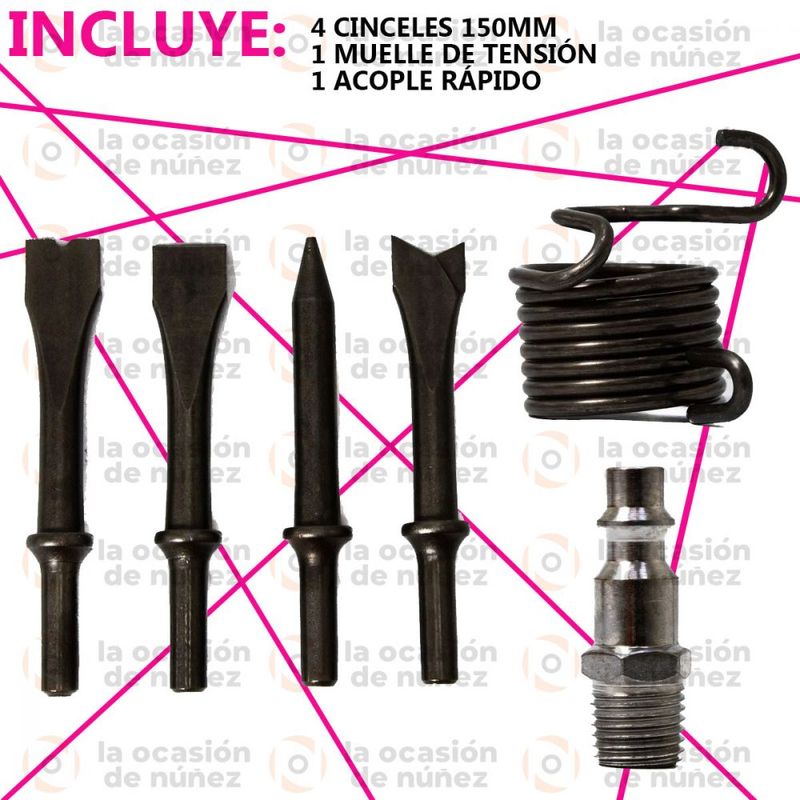 **Incluye:** Juego de 4 cinceles de 150 mm - 1 muelle de tensión - 1 acople rápido